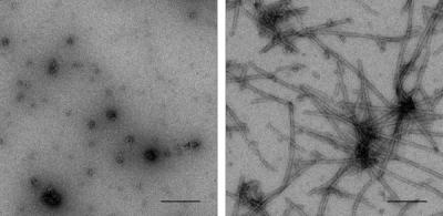 Researchers tested whether sumoylating purified alpha-synuclein hindered its clustering into fibrils, filaments similar to those detected in neurons of PD patients. If all of the alpha-synuclein molecules in a solution were sumoylated, no fibrils appeared. And even if only 10 percent of the molecules were sumoylated, fibril formation slowed dramatically.